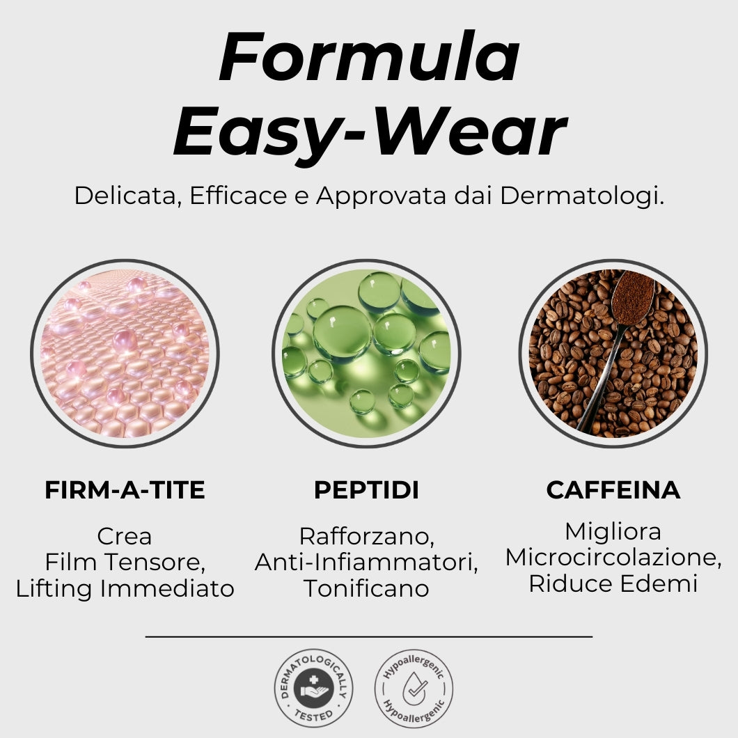La formula ad asciugatura rapida forma un film tensore invisibile che agisce direttamente sulla superficie della pelle, offrendo un effetto lifting istantaneo da beauty clinic.